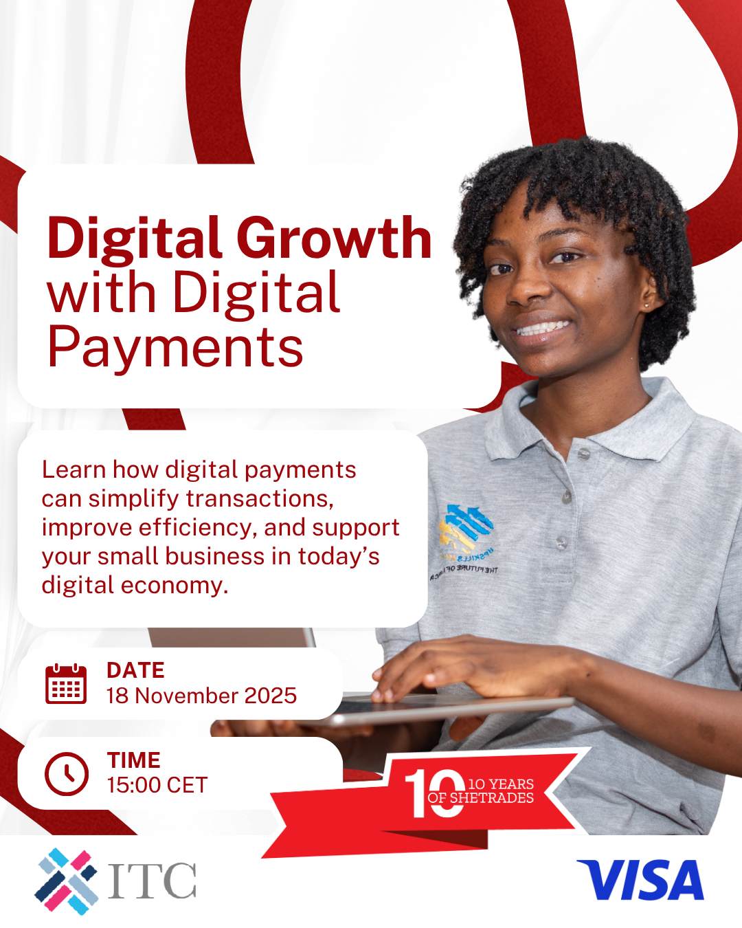 For ten years, our partners have helped SheTrades grow and make a difference. Now they’re coming together to share their best in the SheTrades@10 Masterclass series: six sessions packed with practical tips to protect your brand, move your goods, and reach new markets.