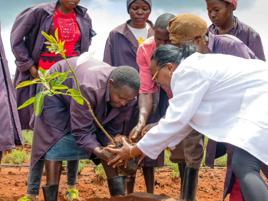 Juja, Kenya – Whether training farmers or planting saplings, Grace is hands-on at every stage of production.